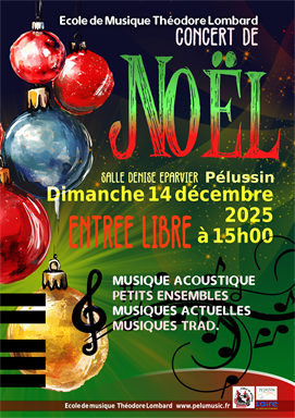- Dimanche 14 décembre à 15h00 à la salle des fêtes : concert de Noël