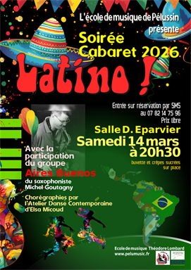 - Samedi 14 mars à 21h00 : Soirée Cabaret à la salle des fêtes. "Latino Américain"